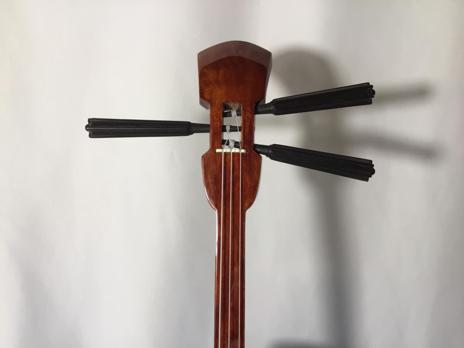 三線の棹としては珍しいですが、比重が0.70-0.80と樫や桑木と硬い木ですので同等の音を奏でてくれます。